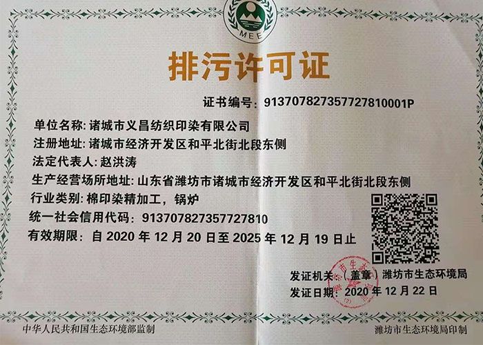 諸城市義昌紡織印染有限公司                              通訊地址:山東諸城市開發(fā)區(qū)和平北街北段東側